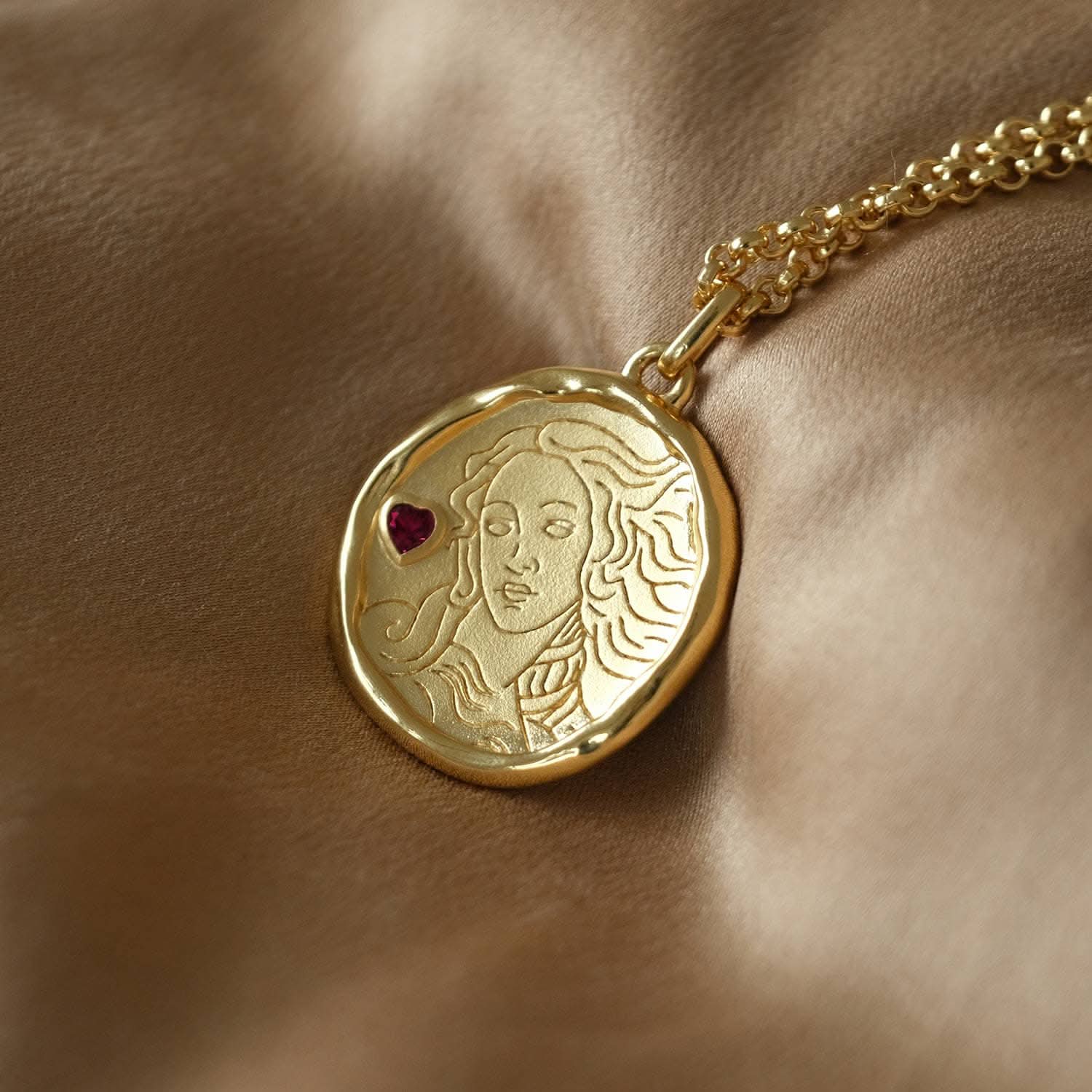 Whatever form she takes, Aphrodite delights in nurturing all sorts of love. Wear the Aphrodite medallion when you're feeling amorous, going on a first date, or as a shining reminder that you are worthy of love, from others as well as from yourself.